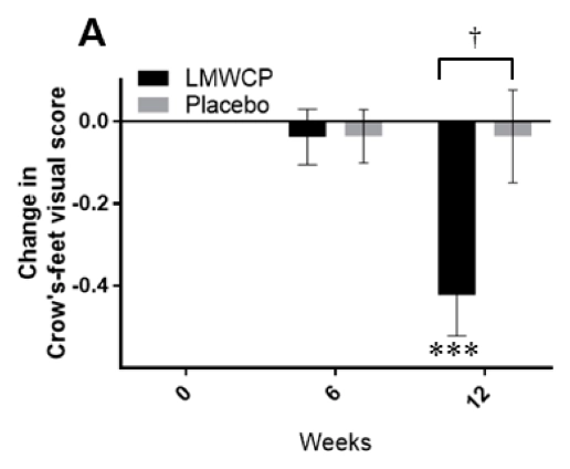 針對40歲以上的族群,每天補充膠原蛋白,為期12週,能夠顯著減少臉上皺紋的明顯程度。
